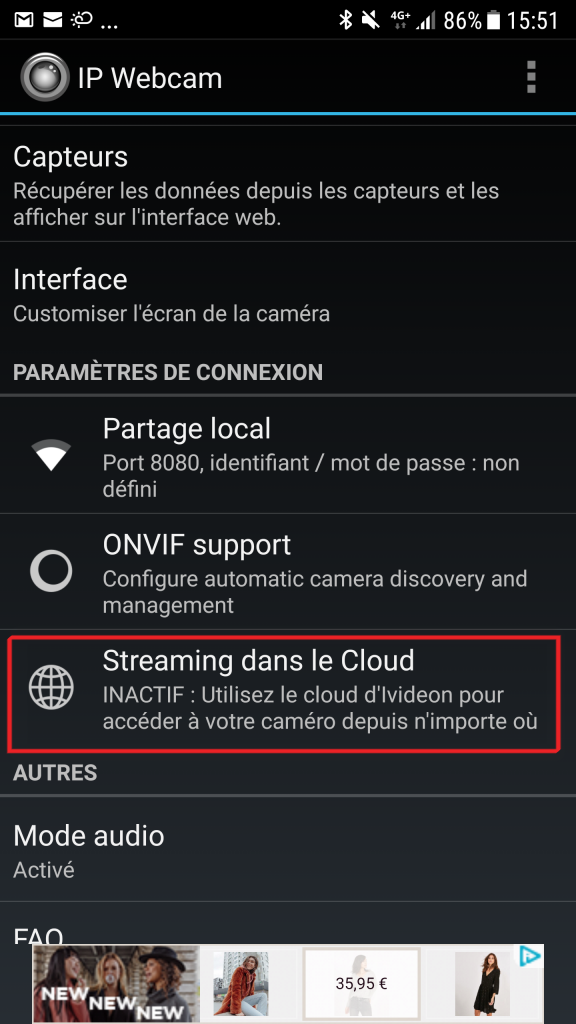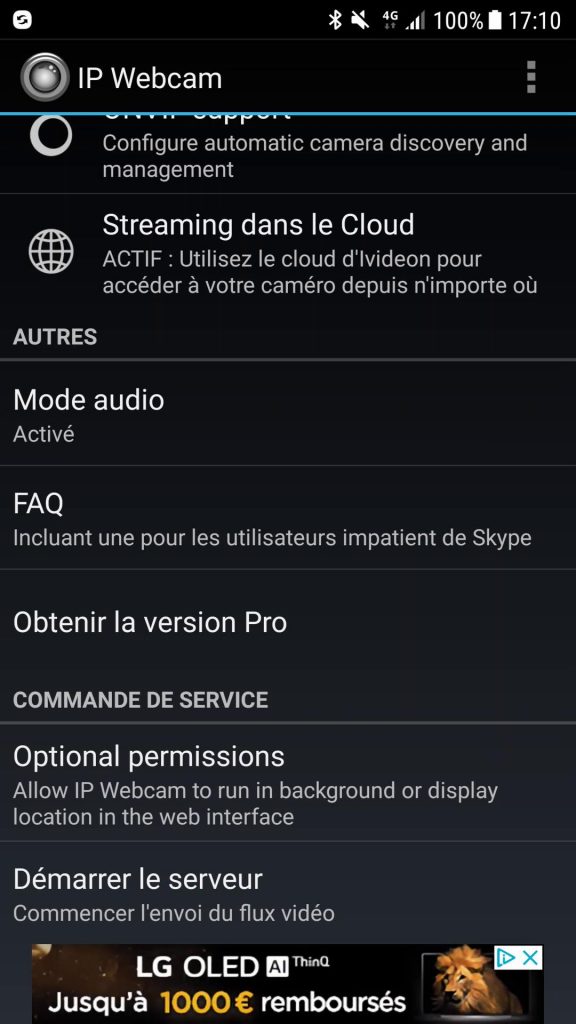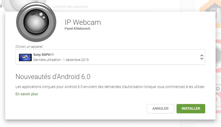 Installation de l’application IP WEBCAM