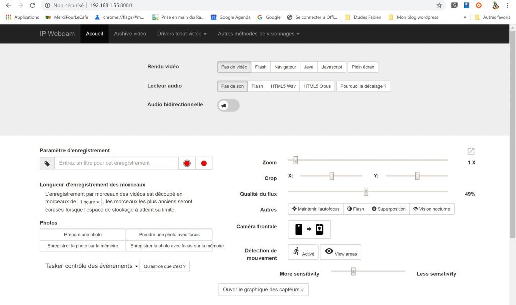 Vous pouvez visualiser le flux de votre smartphone transformé en webcam à partir de l’interface de DOMOTICZ.