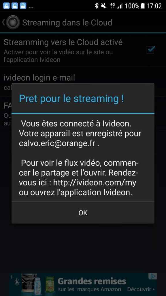 Ivideon a développé une application sous Android ou IOS pour visualiser les flux vidéos de son compte (toujours gratuitement!)