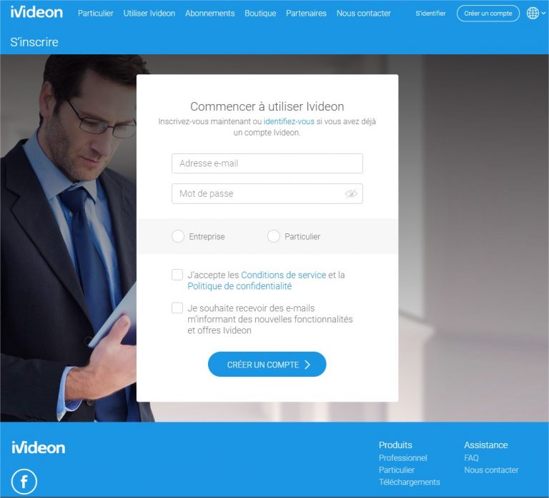A partir de votre explorateur Internet de votre ordinateur, aller sur le site Ivideon et créer un compte.